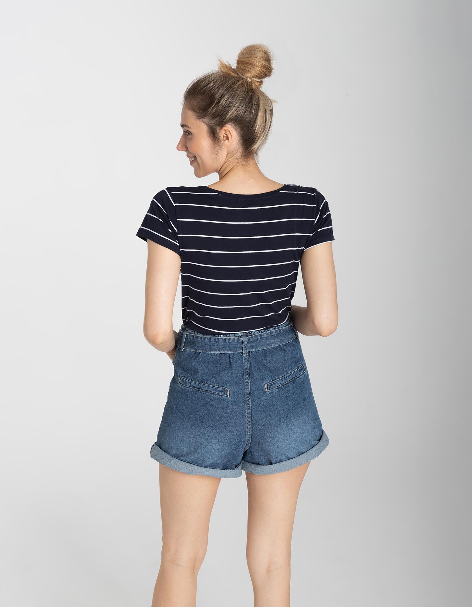 Majica kratek rokav - Črte - temno modra
