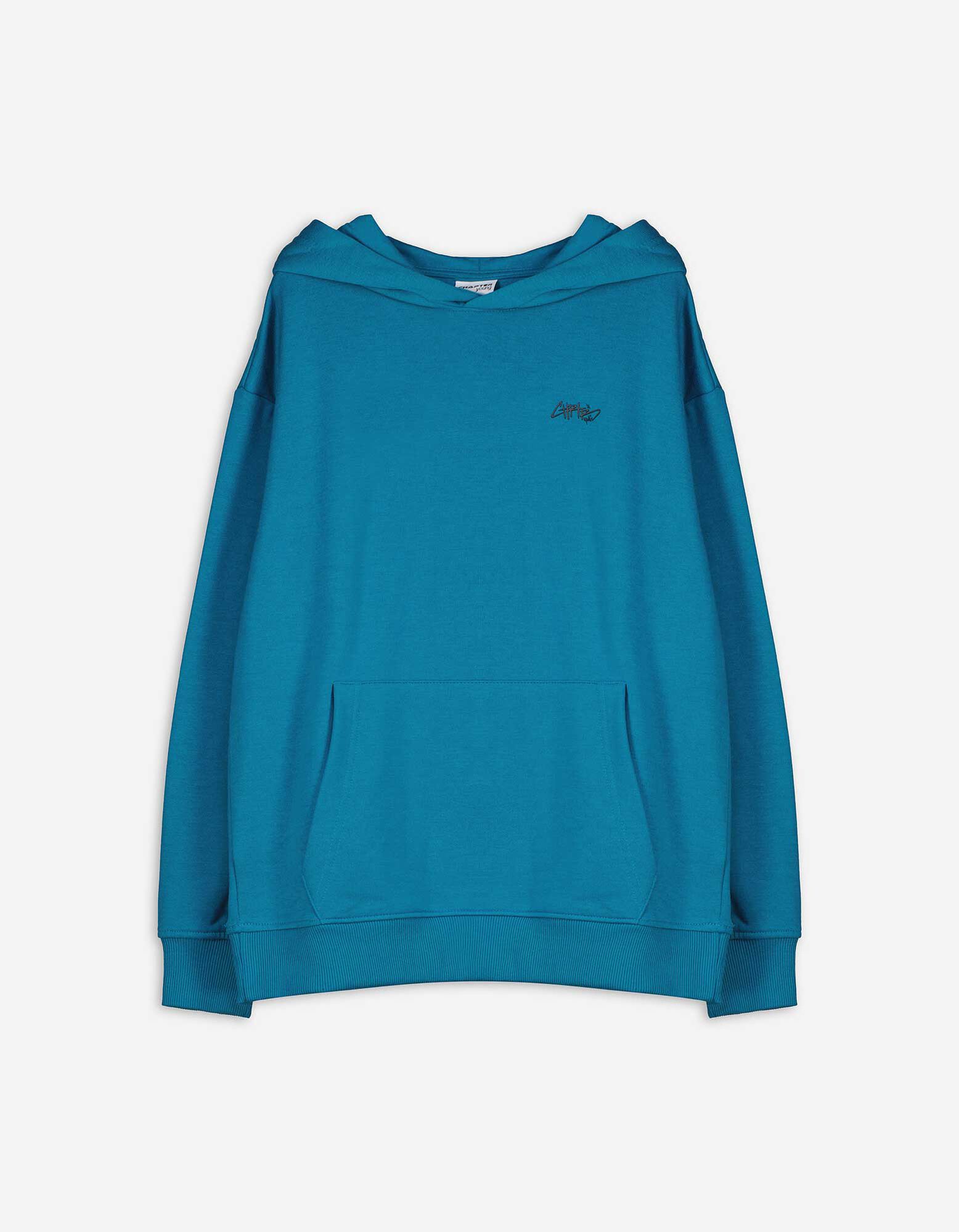 Pulover s kapuco - Potisk s sporočilom - turkizna
