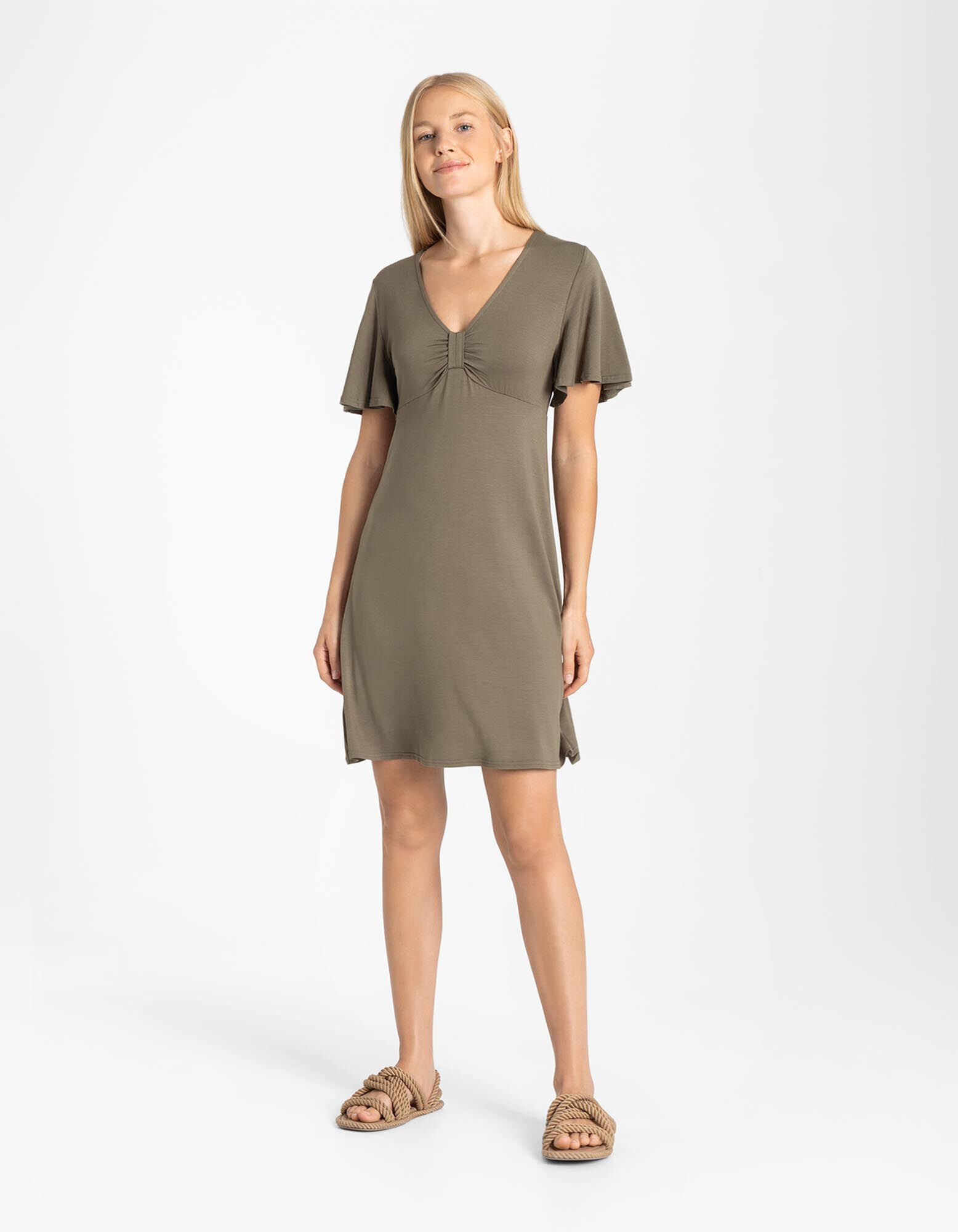 Haljina - Mešavina viskoze - tamno-zelena