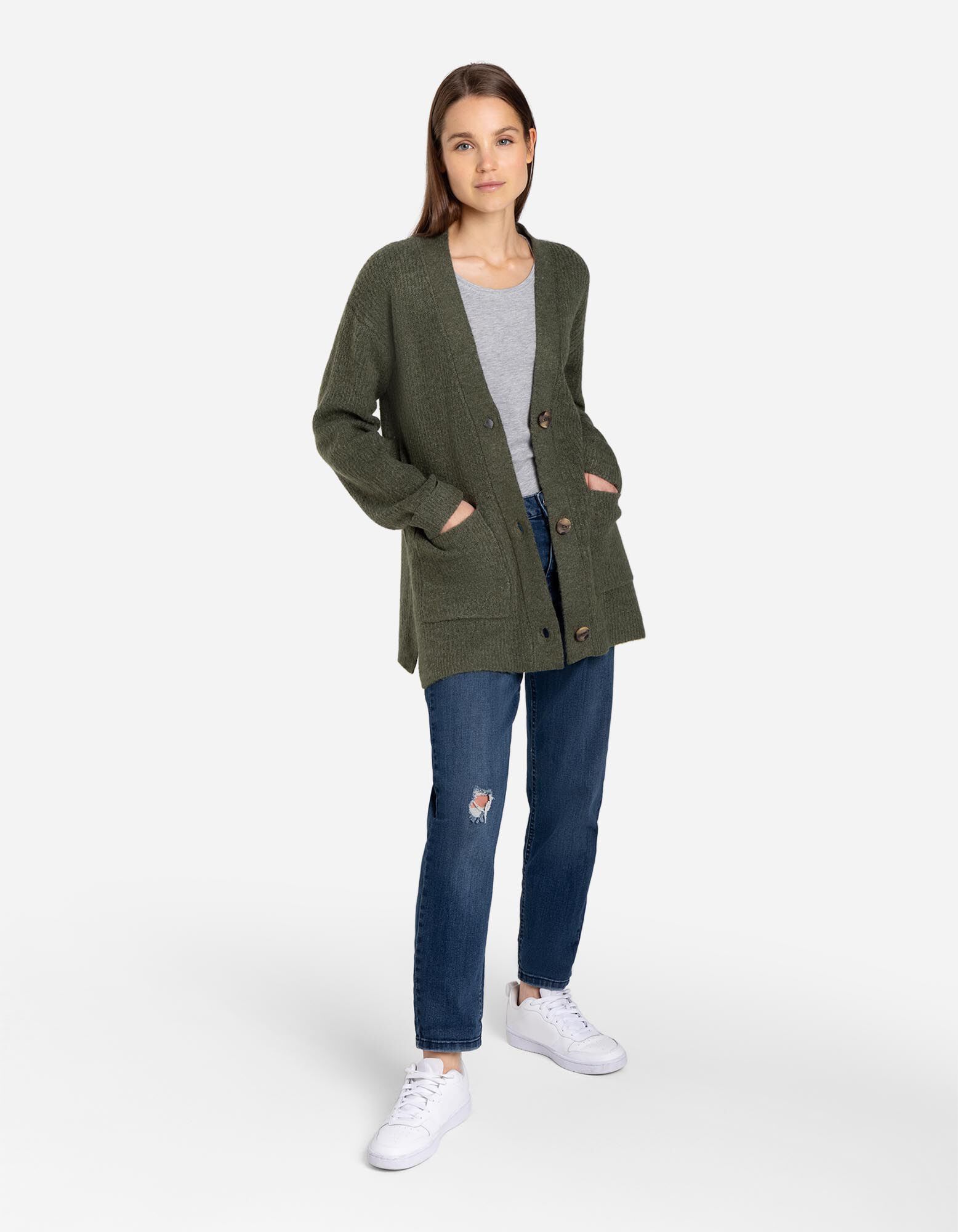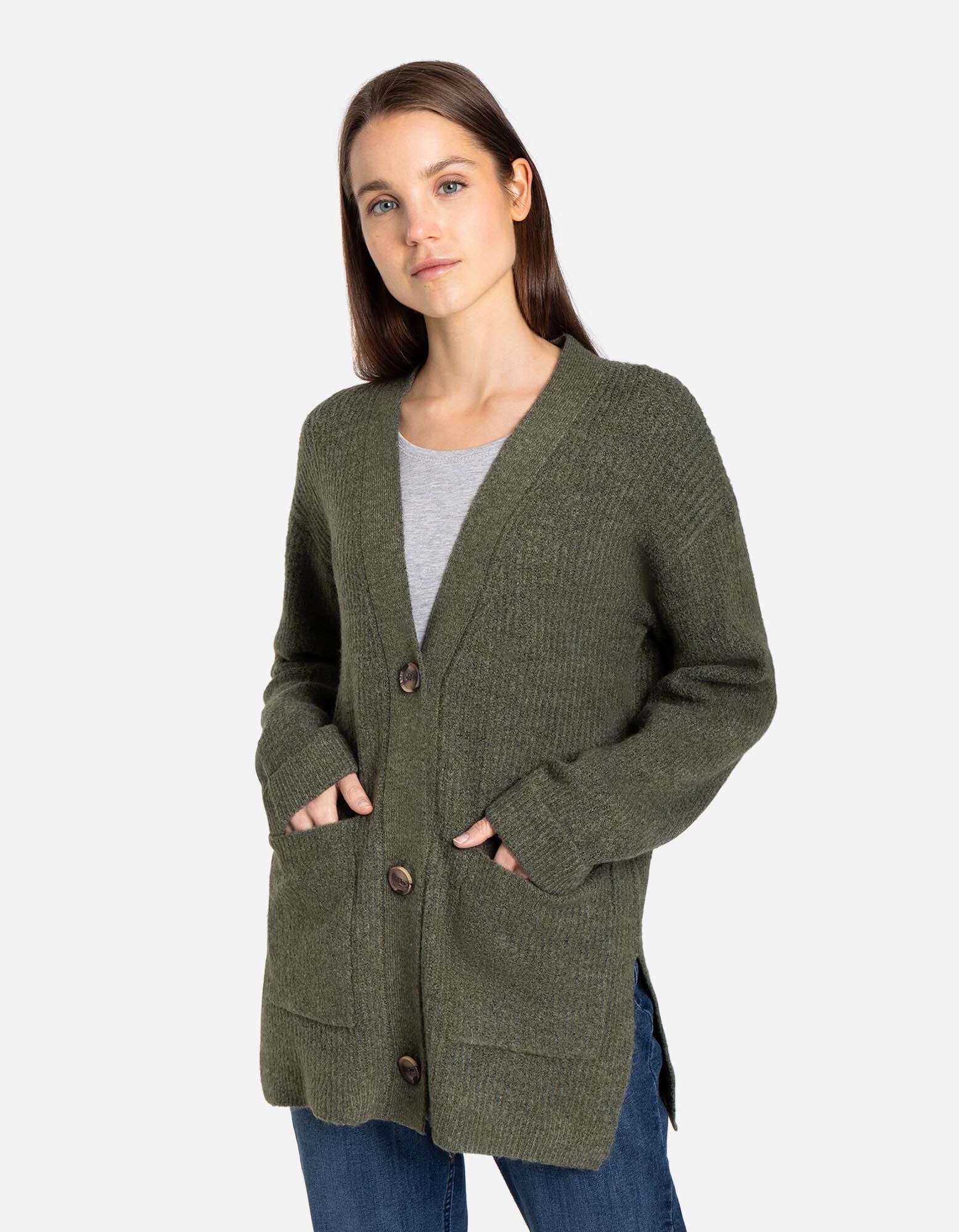Kardigan - Rukavi sa fiksnim manžetnama - tamno-zelena