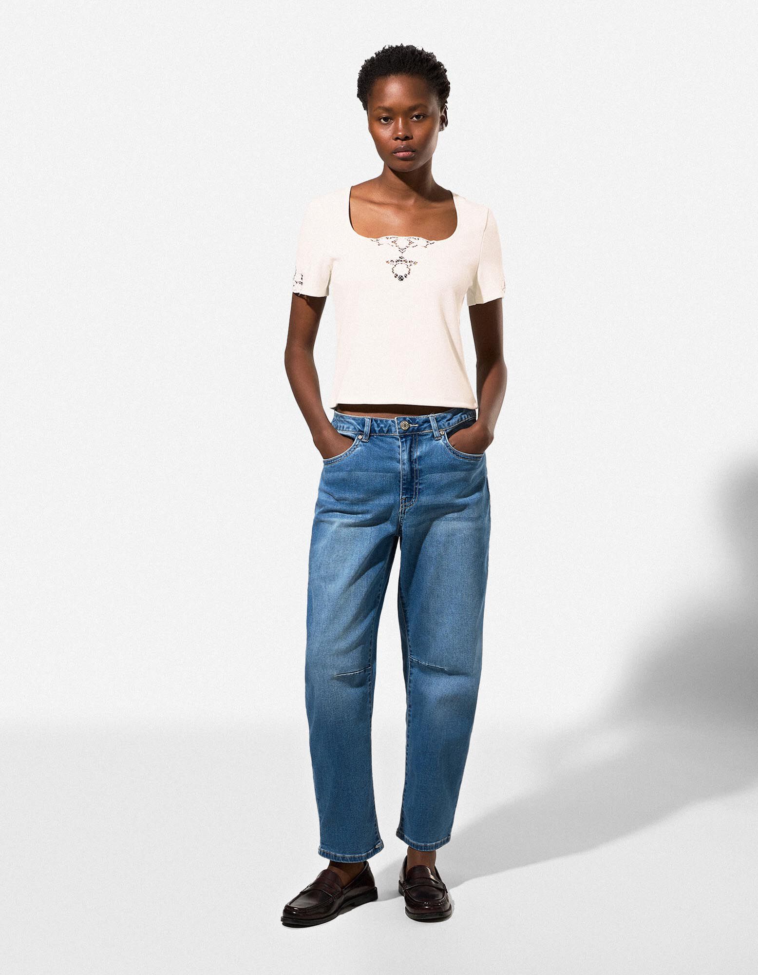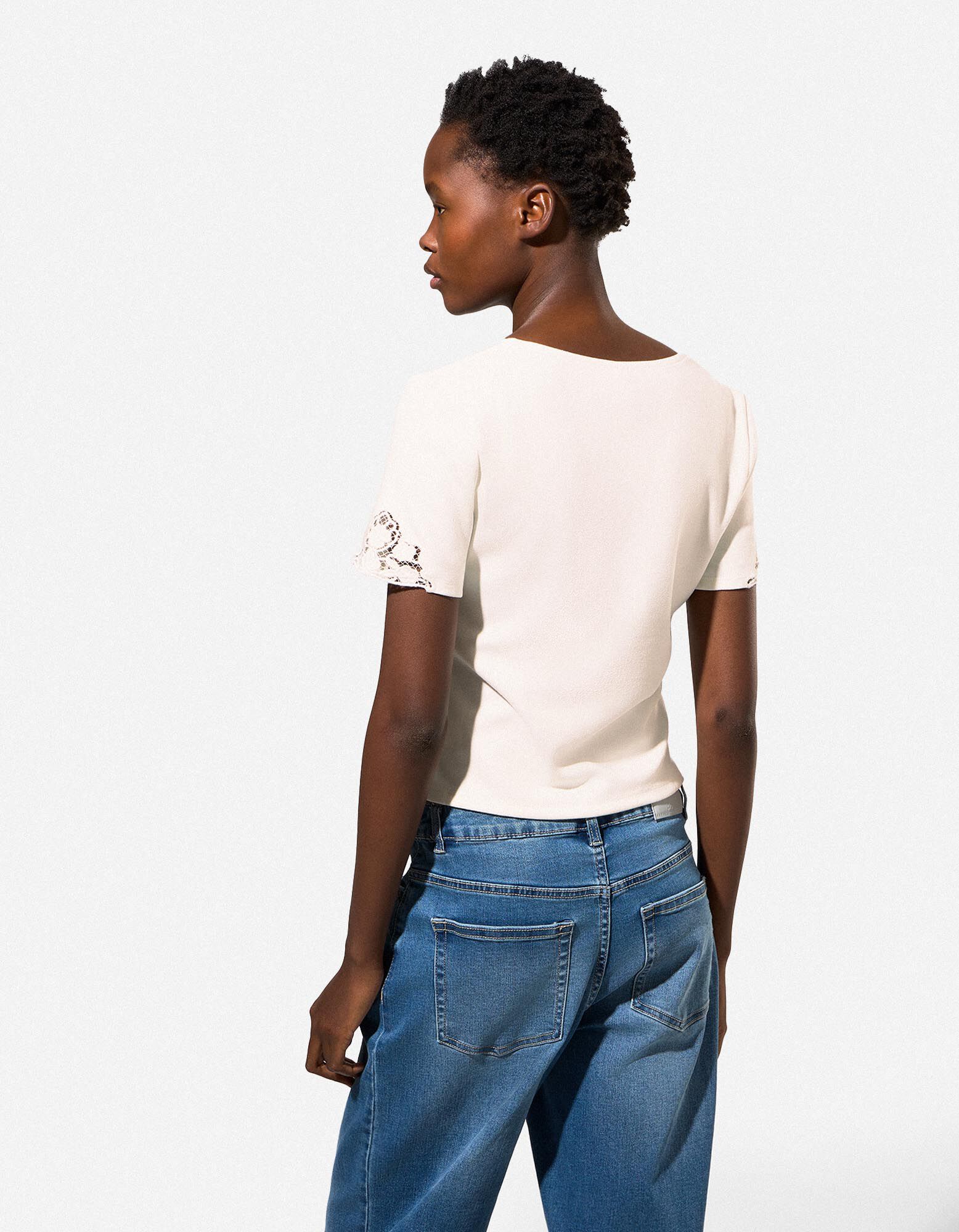 Majica kratkih rukava - čipkasti - bela