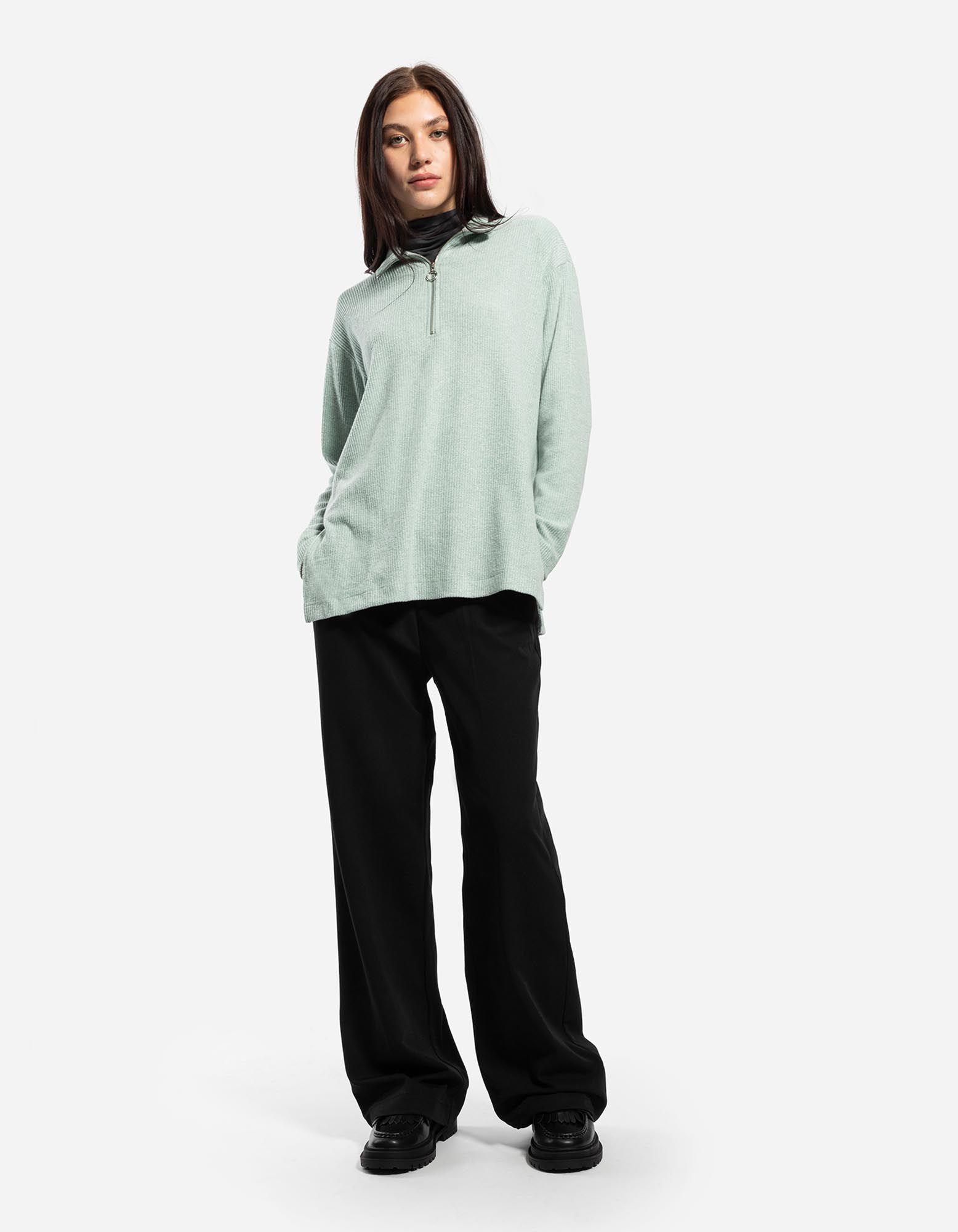 Naš model je visok 174 cm i nosi veličinu 36.