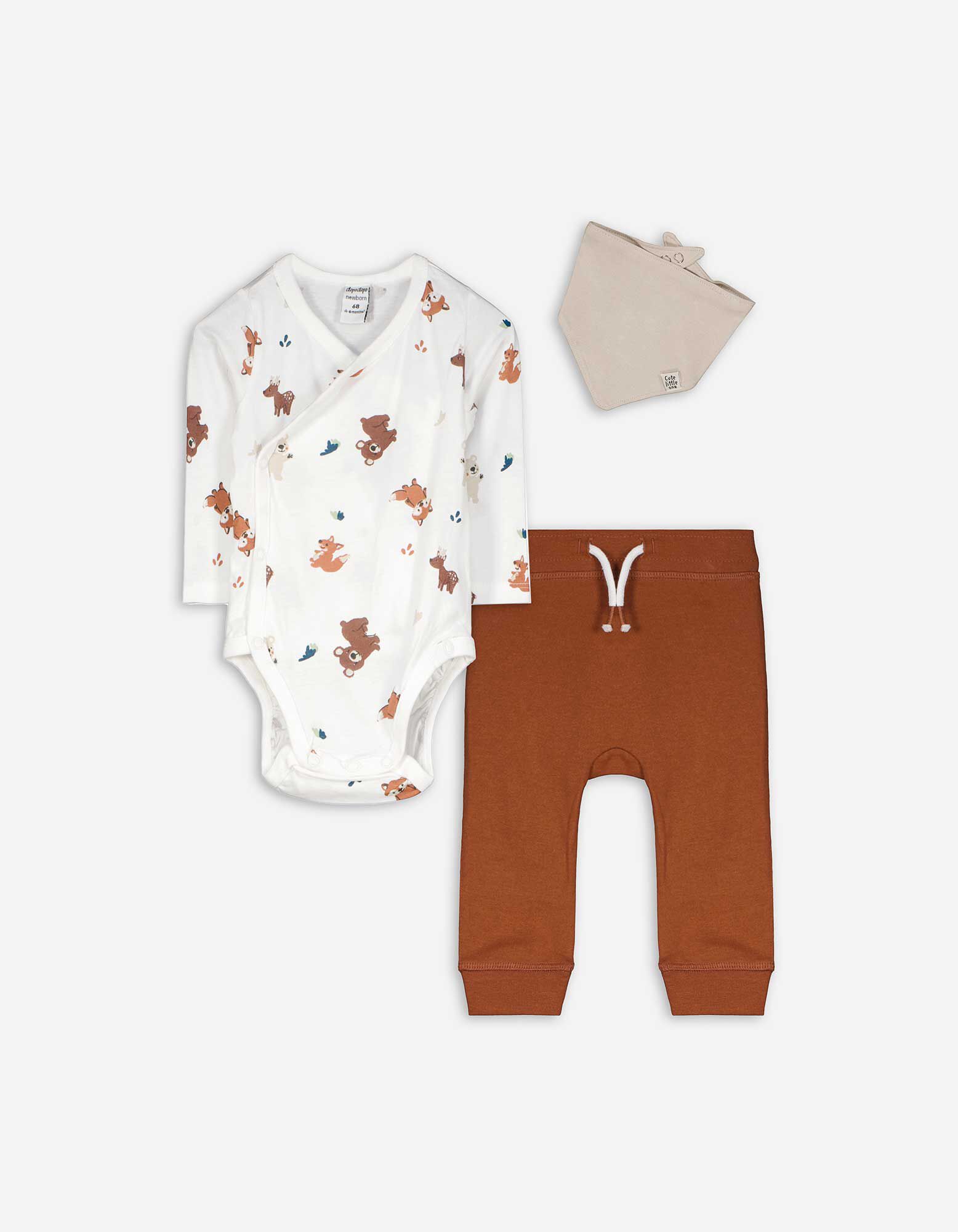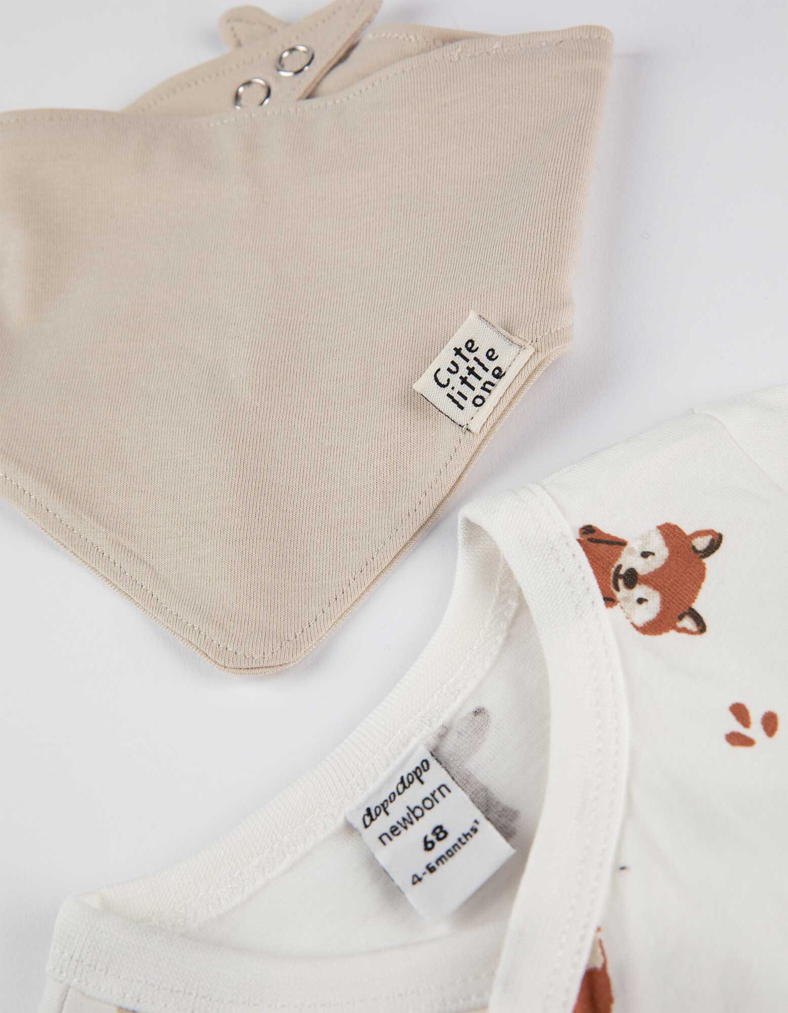 Set od bodija, pantalona i portikle - Šareni print - bela
