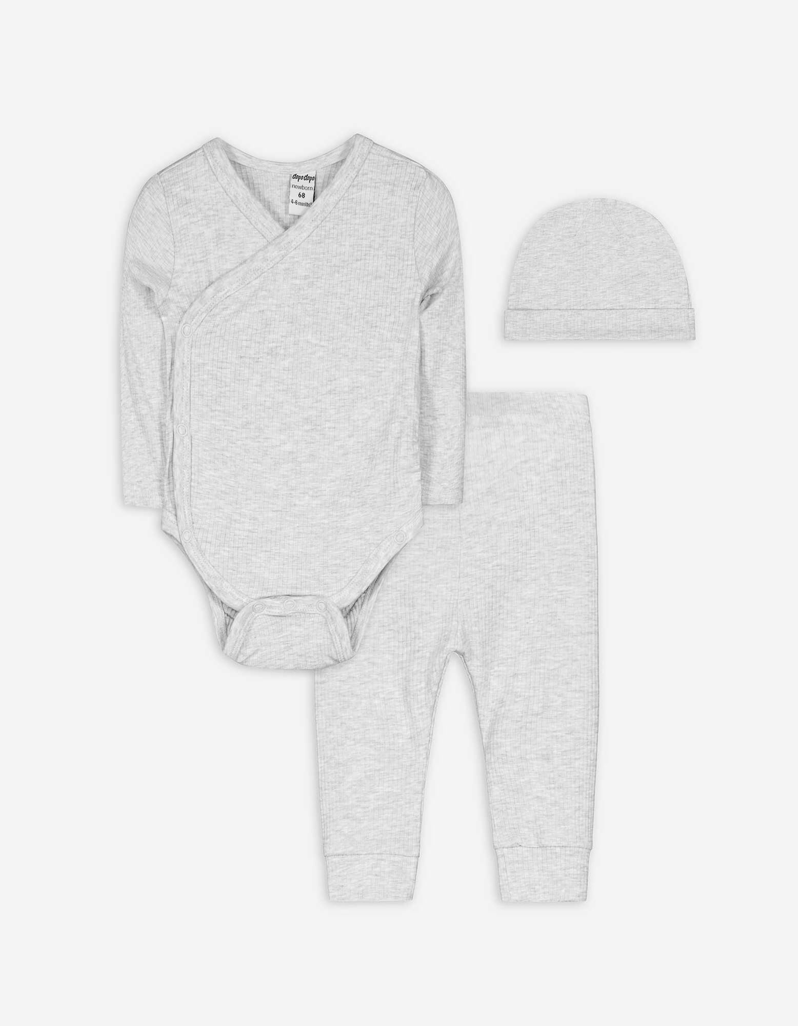 set od body dugih rukava, hlača i šešira - rebrasti materijal - svetlo-siva